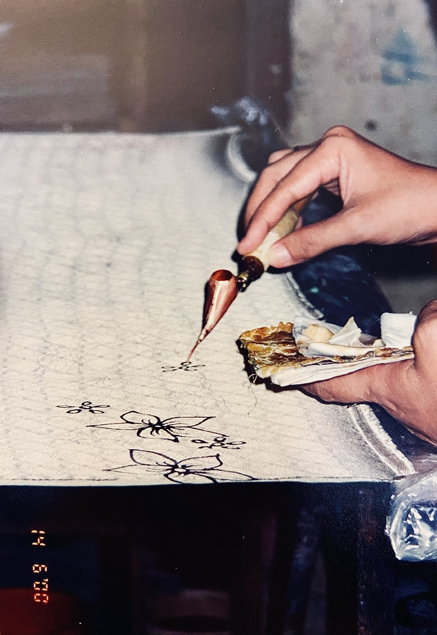 NOTE #1: Long ago when I visited Malaysia, I took a nice up-close photograph of someone hand-painting a batik fabric.