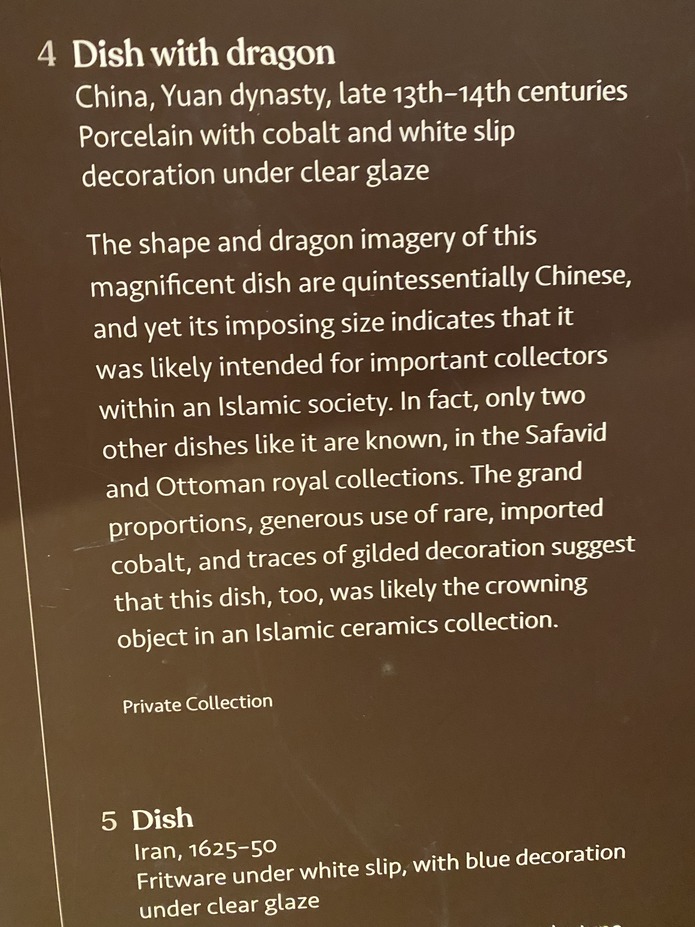 The cobalt blue dragon dish (included in the header image) was from the Arts of Islamic Cultures section. I was in a bit of a rush there as the museum was about to close for the day, but I’m glad I managed to snap a photo of that.