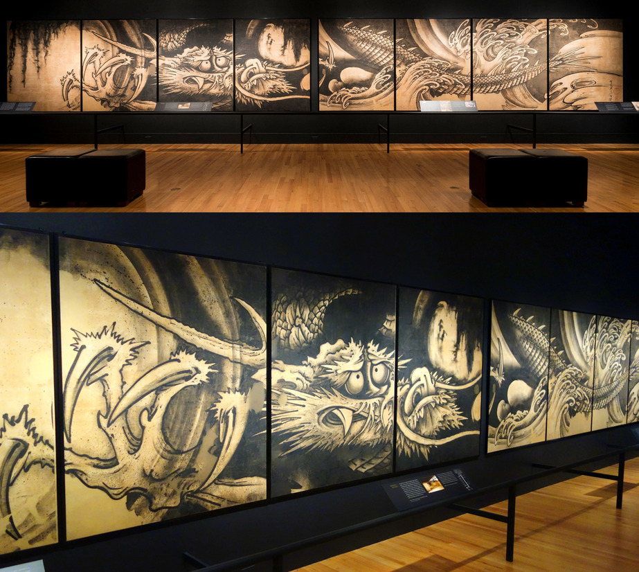 In 2014, MFA Boston showed the restored “Dragon and Clouds” made by the Japanese eccentric artist Soga Shohaku in 1763, via a set of eight panels, ink on paper.