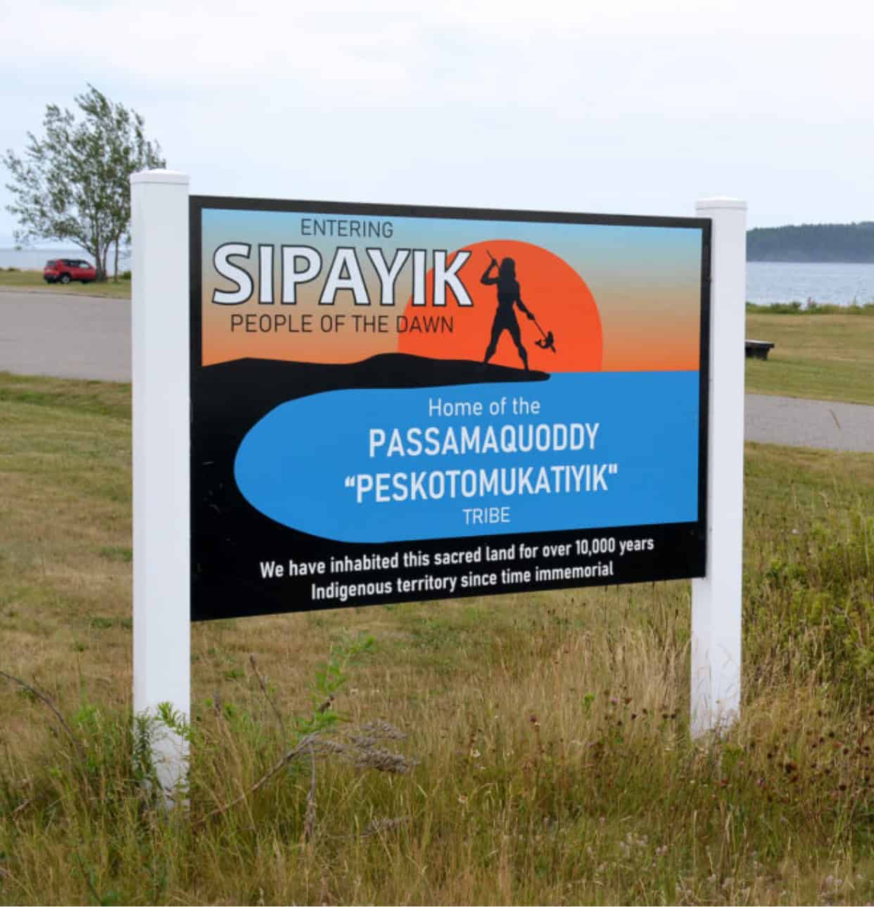 Welcome sign at Passamaquoddy Reservation. Image from Wabanaki.com