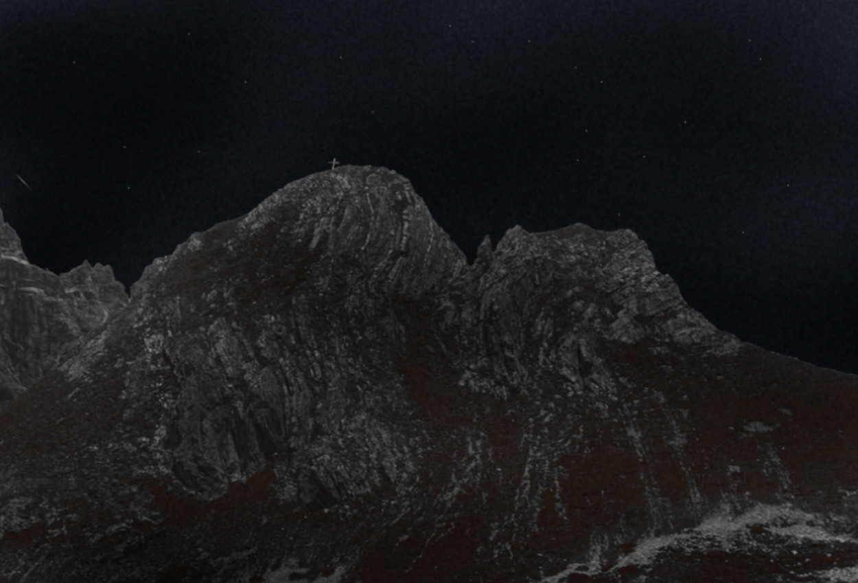 upon the dark deserted mount and lands.