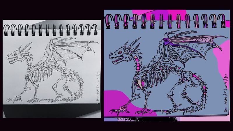 I enjoyed drawing the dragon skeleton, which was a follow-up from a dragon skull sketch.
